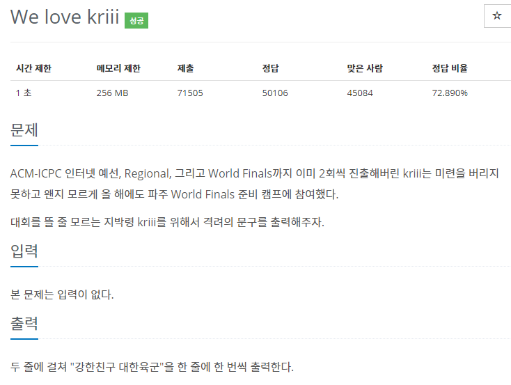 print("강한친구 대한육군") print("강한친구 대한육군")